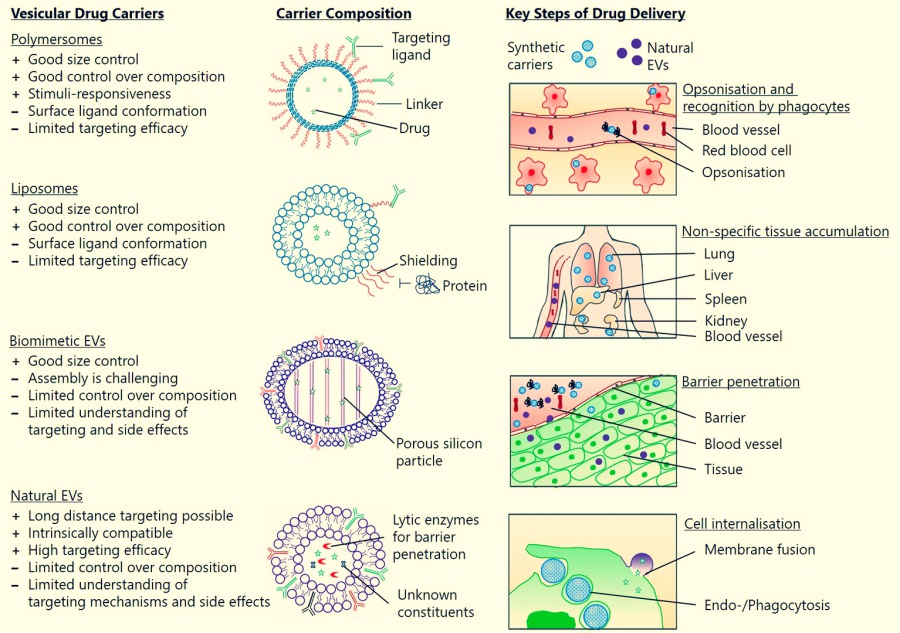 In addition, EVs feature a natural composition, stability in physiological fluids and can potentially bypass immune activation rendering them promising drug transporters. Nevertheless, efficient methods to load small molecule drugs into EVs need to be explored in order to harness their exceptional properties (Fuhrmann* et al., J Control Release (2016)).